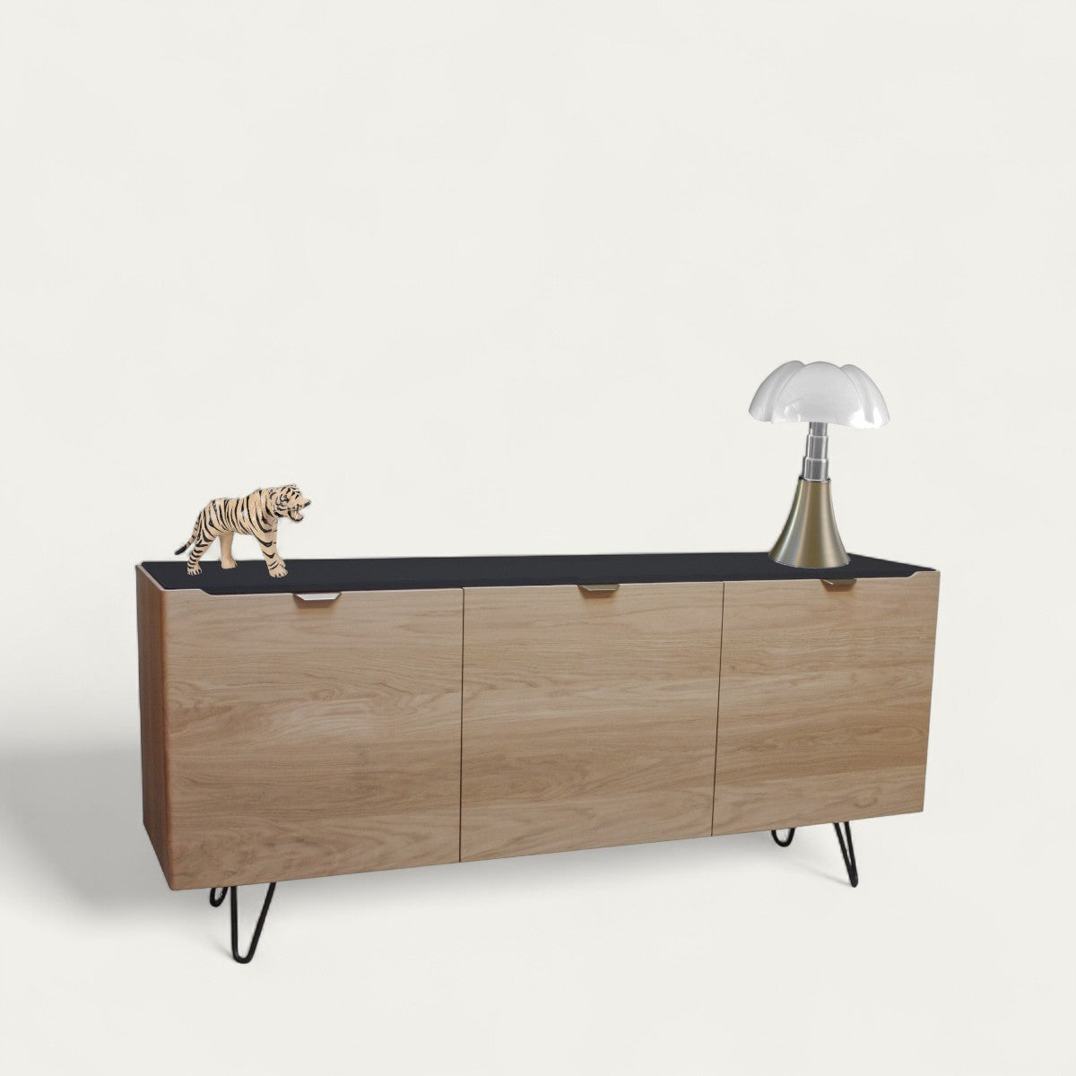 Bleached and black lacquered oak sideboard, 3 doors - 185L x 48D