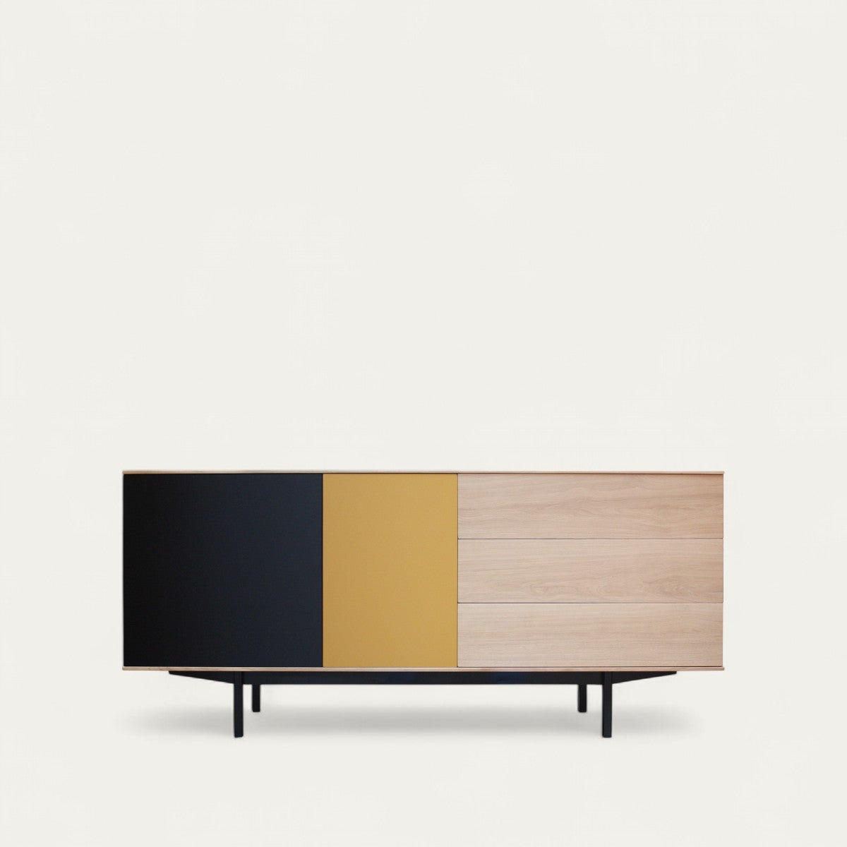 Buffet chêne massif et laqué 2 portes 3 tiroirs