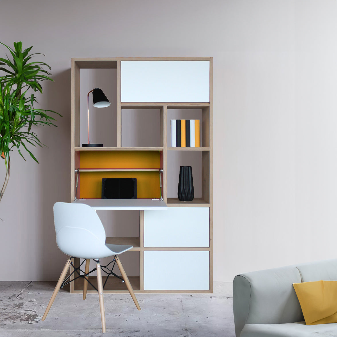 Composition secrétaire en bois massif et laqué, fabriquée artisanalement dans nos ateliers près de Rennes, avec assemblages d'ébénisterie.